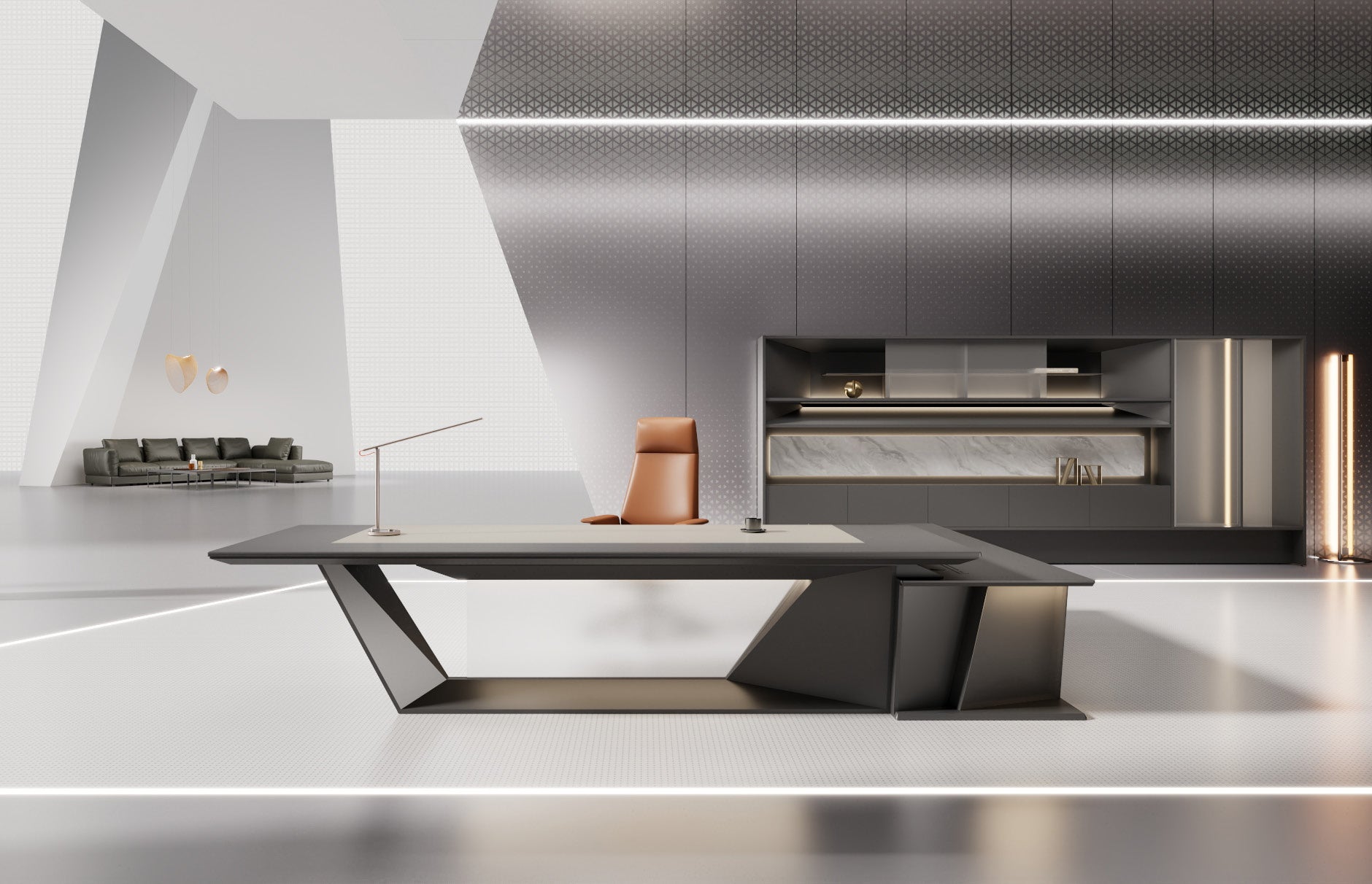 L’AVANT-GARDE is for visionaries who don’t follow trends—they define them. With sculptural geometry and asymmetrical lines, this suite merges statement-making architecture with practical leadership functionality. A tribute to innovation, it honors the individual who transforms strategy into movement and workspaces into legacies. Every curve and contrast delivers presence without pretense.