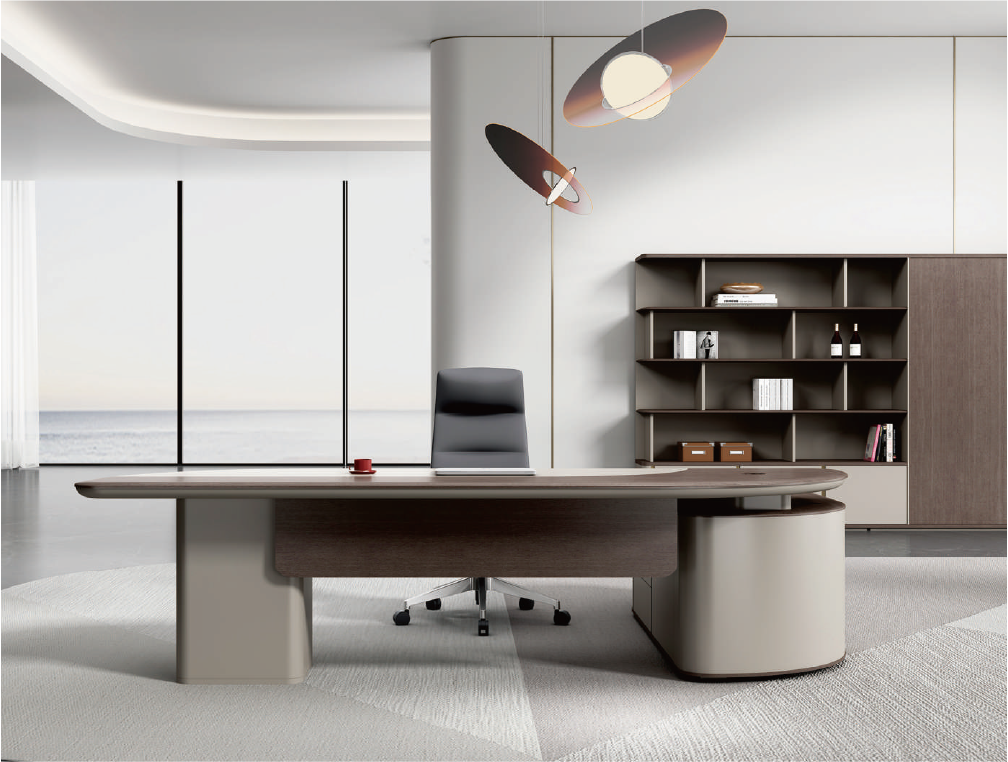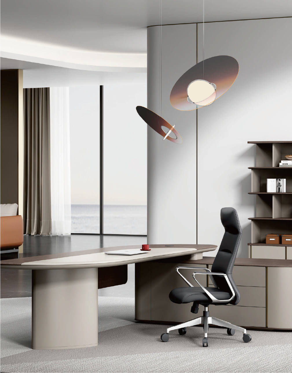 Lumine is a breath of fresh design. Soft tones and curved lines bring comfort and calm to compact offices or home studios.